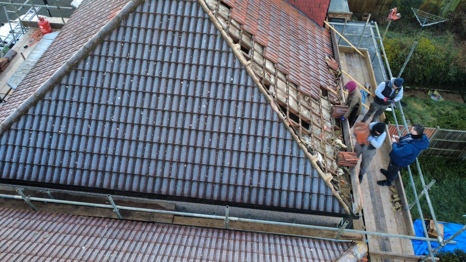 The new roof covering was installed in neatly aligned, overlapping courses to ensure consistent weather resistance. Each tile or slate was securely fixed using corrosion-resistant fasteners, providing strong protection against wind uplift and seasonal temperature movement.